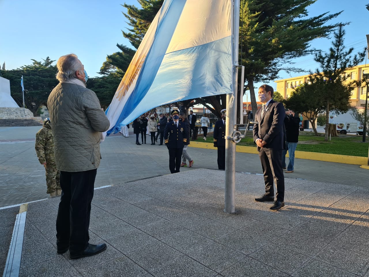 “Lamentablemente por segundo año consecutivo no podemos hacer el típico desfile patrio que tanto nos caracteriza a los comodorenses para recordar a los héroes por las calles de la ciudad”, expresó el intendente Juan Pablo Luque al finalizar el acto que duró pocos minutos luego del izamiento de la bandera nacional.