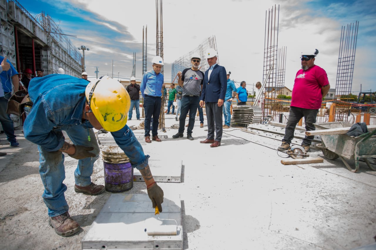 El gobernador del Chubut, Mariano Arcioni, visitó la obra del futuro Colegio de los Trabajadores que lleva adelante el Sindicato de Petroleros Jerárquicos de la Patagonia Austral. Junto al secretario General de esta organización, José Llugdar, resaltó los alcances del proyecto que comprenderá tres niveles de educación y una formación de base técnica orientada a la industria.