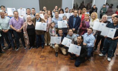 El intendente Juan Pablo Luque encabezó el acto oficial de entrega de títulos de propiedad a 45 vecinos de la ciudad en instalaciones del Club Huergo...