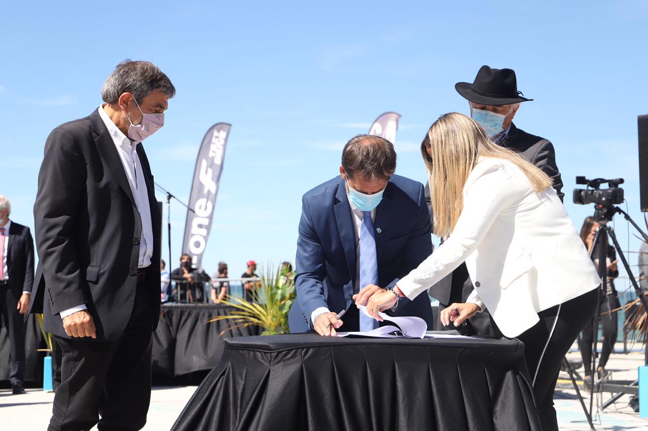 En detalle, se firmó la puesta en marcha de la obra de estabilización del Cerro Chenque por más de 400 millones de pesos; ocho proyectos en el marco del plan “Argentina Hace” por 97 millones de pesos; mantenimiento de la Ruta Nacional N° 3 por casi 350 millones de pesos; redes de desagües pluviales principales, secundarios y reservorios en zona sur, etapa 1 por 150 millones de pesos; y el esperado sistema primario cloacal emisario marino y descarga zona norte, por 996 millones de pesos.