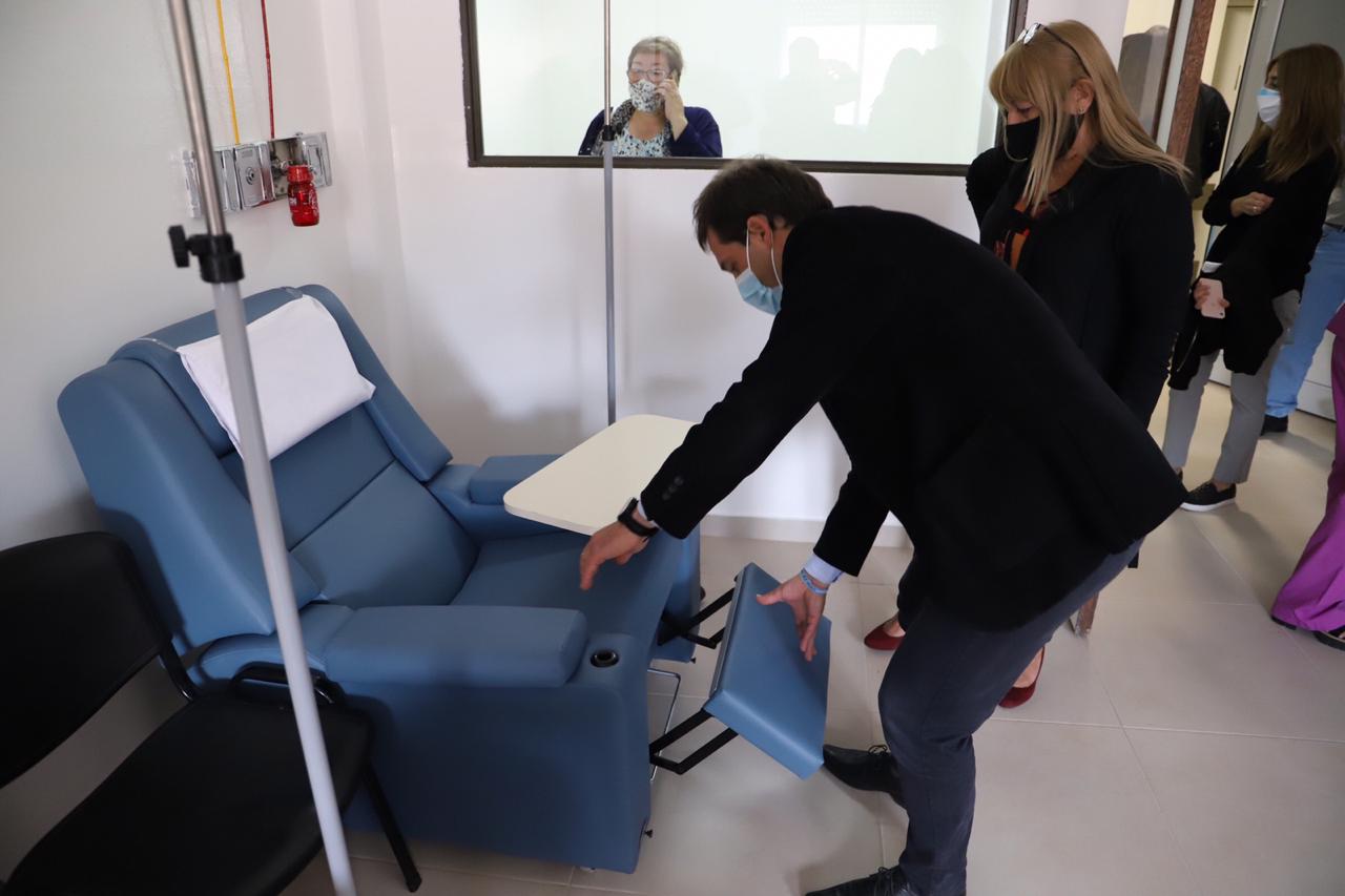 En esta ocasión, a raíz de un requerimiento del área de Pediatría del Hospital Regional, desde la Municipalidad se invirtieron 340 mil pesos en la compra de cinco sillones de quimioterapia para el tratamiento de pacientes oncológicos infantiles, lo que permitió la apertura de la nueva sala destinada para todos los tratamientos hemato-oncológicos con la Dra. Florencia Gutiérrez. Esto permitirá que varias familias comodorenses eviten viajar a Buenos Aires, al contar con este espacio en el sistema público.