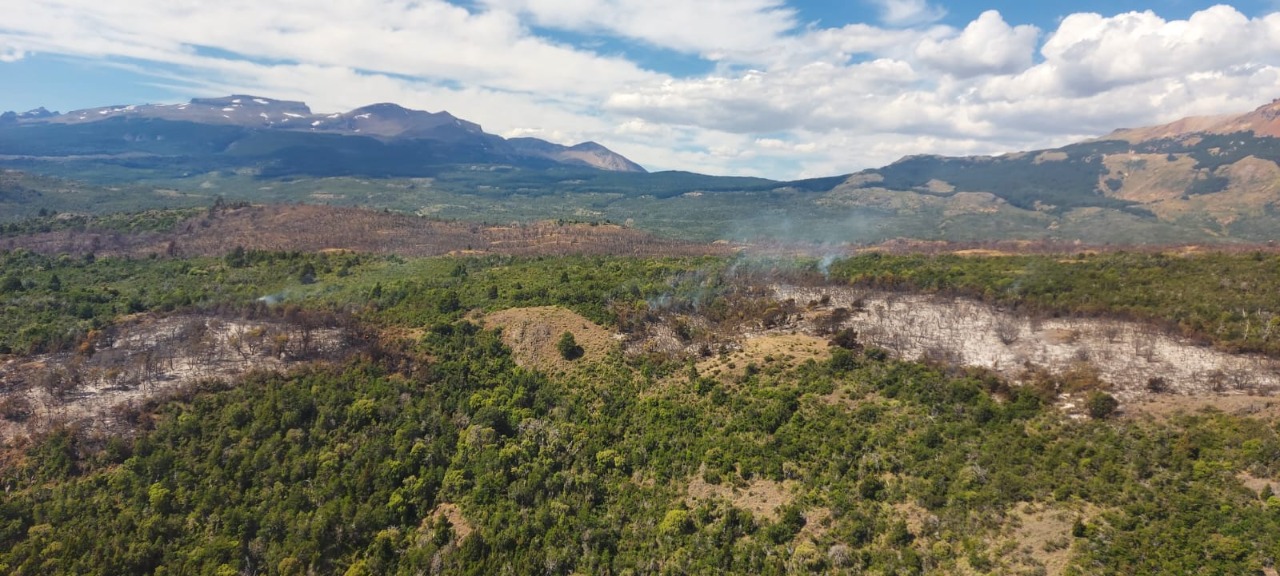 El operativo para detener el avance del siniestro ígneo ubicado en la zona conocida como “Buffer” es coordinado de manera conjunta entre el Servicio Provincial de Manejo del Fuego (SPMF) y el ICE del Parque Nacional “Los Alerces”.