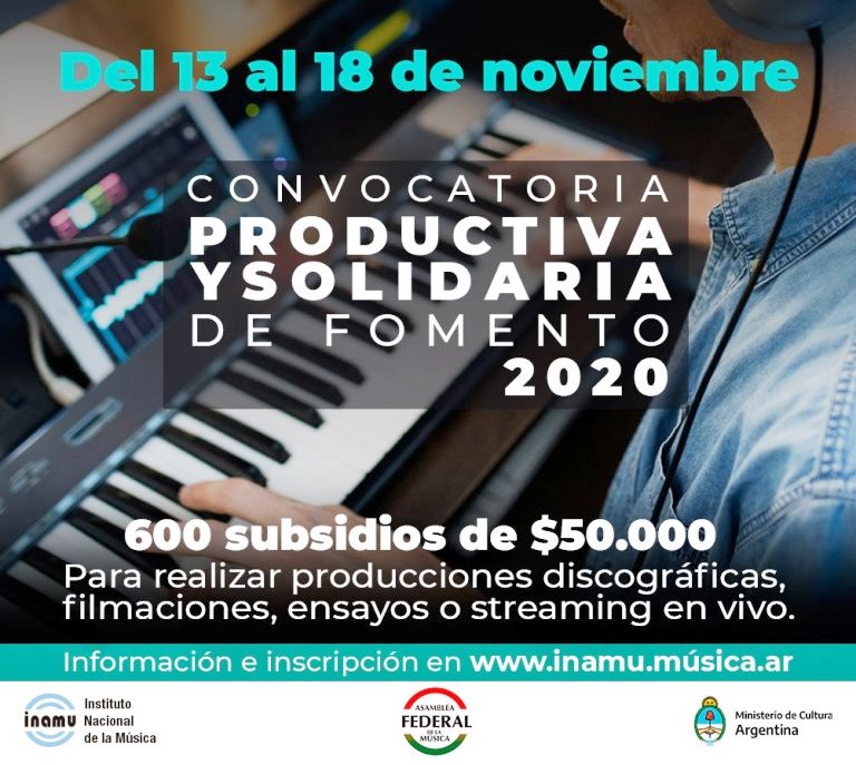 Cultura: Hoy cierra la convocatoria “Productiva y Solidaria de Fomento 2020” del Instituto Nacional de la Música