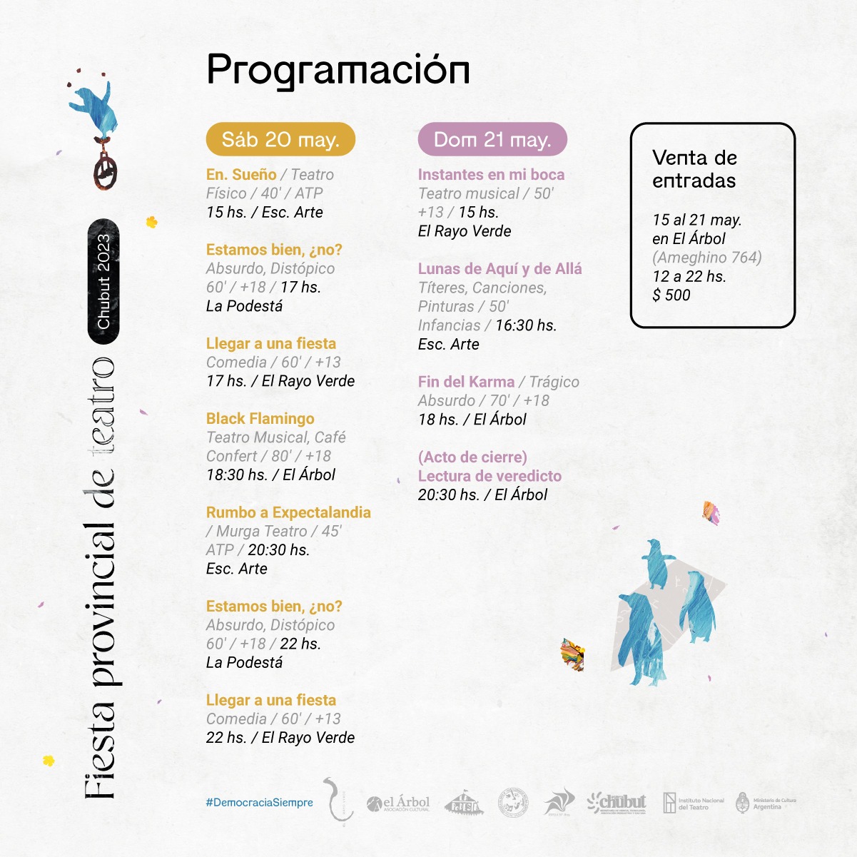 El Gobierno de la Provincia junto al Instituto Nacional del Teatro (INT) –Representación Chubut– dieron a conocer el cronograma oficial de obras y actividades de encuentro y aprendizaje que se celebrarán durante la nueva edición de la Fiesta Provincial de Teatro.