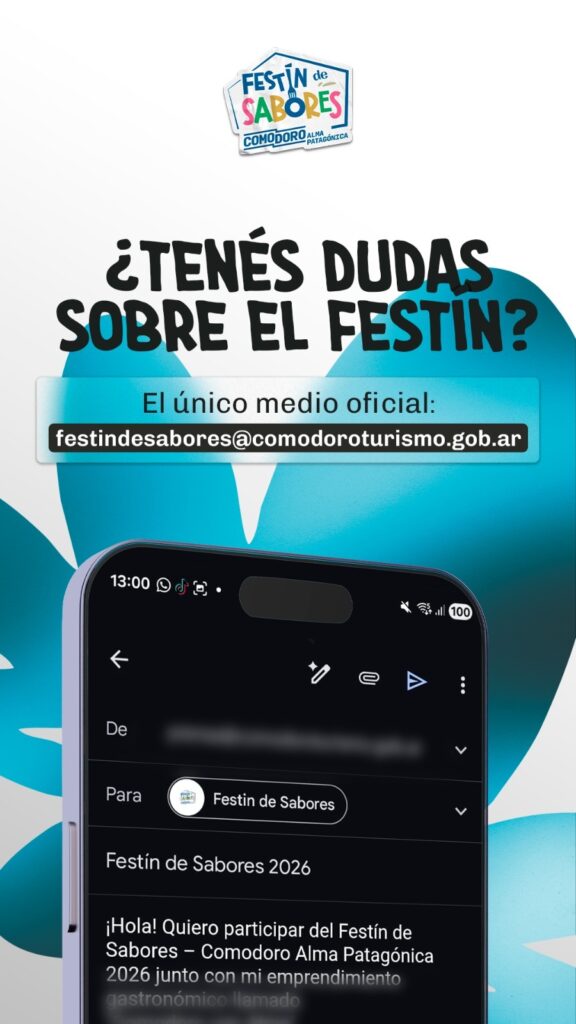 Para más información, aquellos interesados en participar pueden visitar el sitio web https://comodoroturismo.gob.ar/festindesabores/, dirigirse a las redes sociales de Comodoro Turismo o enviar un correo electrónico a festindesabores@comodoroturismo.gob.ar.