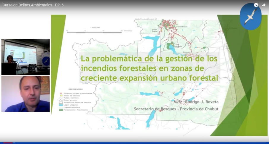 En el marco de este encuentro virtual coordinado por la Casa de Altos Estudios, el titular de la cartera de Bosques del Chubut disertó sobre la problemática de los incendios forestales en zonas de creciente expansión urbano-forestal de la cordillera.