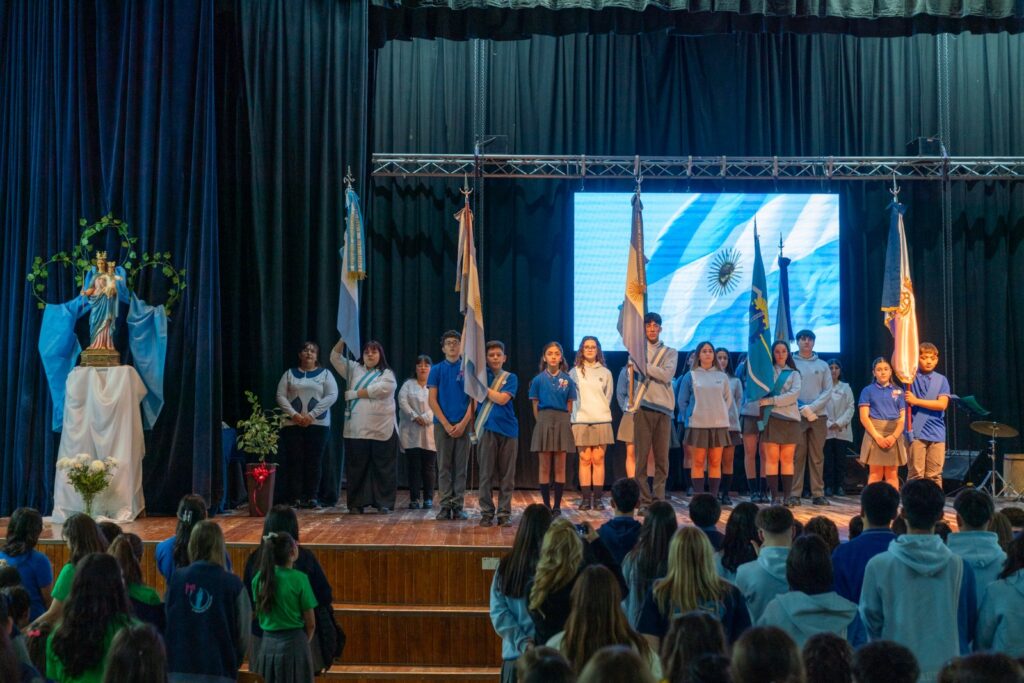 El acto centenario del Instituto María Auxiliadora, se llevó adelante este viernes, en el teatro de la institución, con la presencia del intendente Othar Macharashvili; el secretario de Tierras, Carlos Jurich; el secretario General y Relaciones Comunitarias, Andrés Blanco; la senadora nacional Andrea Cristina; el obispo de la Diócesis de Comodoro Rivadavia, Jorge Luis Wagner; la directora Carolina Otero; integrantes de la Banda Militar “Sargento Mayor Matías Sarmiento” del Regimiento de Infantería Mecanizado 8; y miembros de la comunidad educativa.