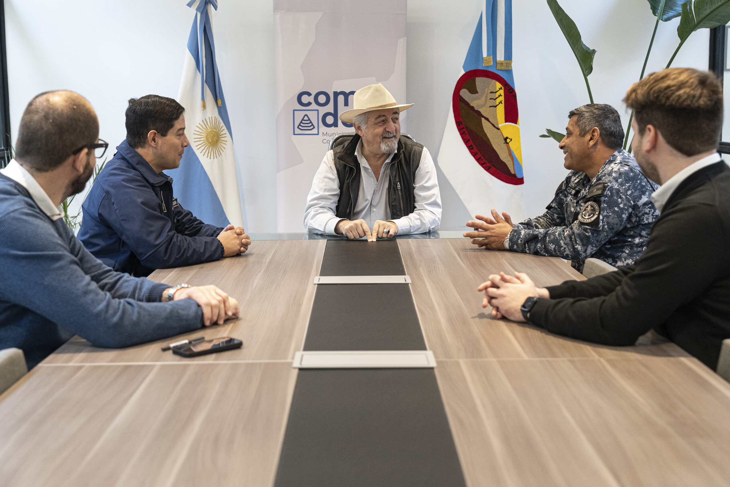 Durante el encuentro, el mandatario comodorense estuvo acompañado por el secretario General y de Relaciones Institucionales, Andrés Blanco; y el titular de la cartera de Desarrollo Humano y Familia, Ángel Rivas.