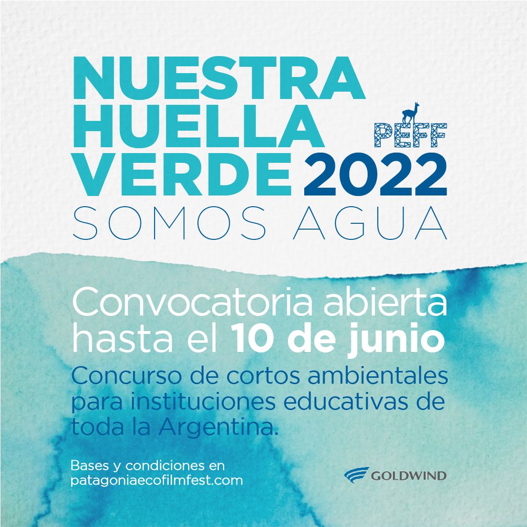 El concurso “Nuestra Huella Verde” es una iniciativa del PEFF junto a Goldwind Argentina que propone a estudiantes de instituciones educativas formales y no formales de todo el país, generar proyectos audiovisuales que dialoguen sobre temáticas ambientales. Para esta edición el eje temático de la convocatoria estará puesto en el agua, dentro de los tópicos se sugiere trabajar sobre: el agua recurso vital para la vida, su cuidado, su uso racional y eficiente, reutilización, el ciclo del agua, saneamiento, acceso universal y equitativo al agua potable entre otros.