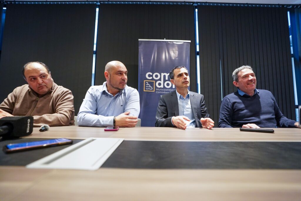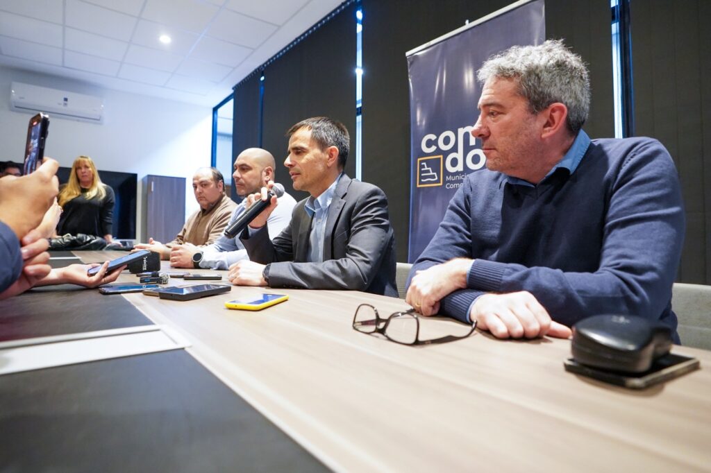 Este jueves, se presentó el proyecto, por el cual en primera instancia mantuvieron una reunión el intendente Othar Macharashvili; el viceintendente Maximiliano Sampaoli; junto a quienes participaron del anuncio: el secretario de Recaudación, Luis Perea; los concejales Ariel Montenegro y Pablo Bustamante, y el presidente de la Cámara de Comercio, Sebastián Aguirre.