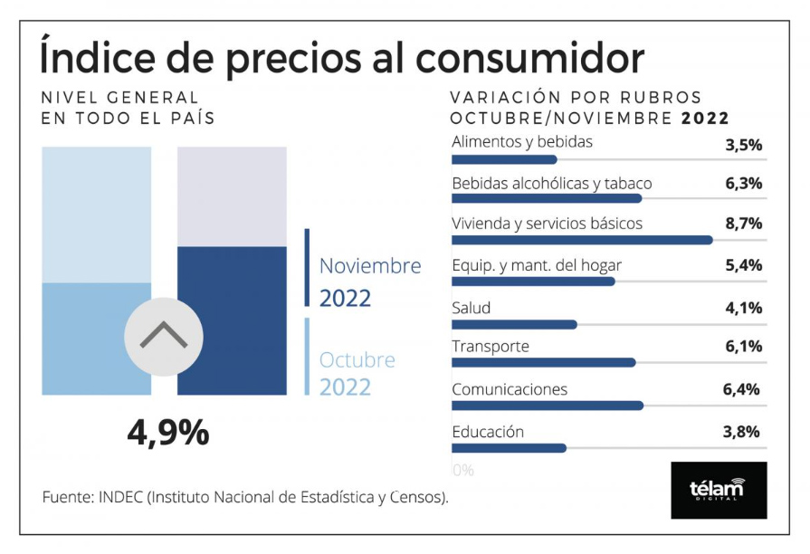 Los datos del informe de Instituto Nacional de Estadísticas y Censos señalan que el índice acumula un 85,3% en los primeros once meses de 2022.