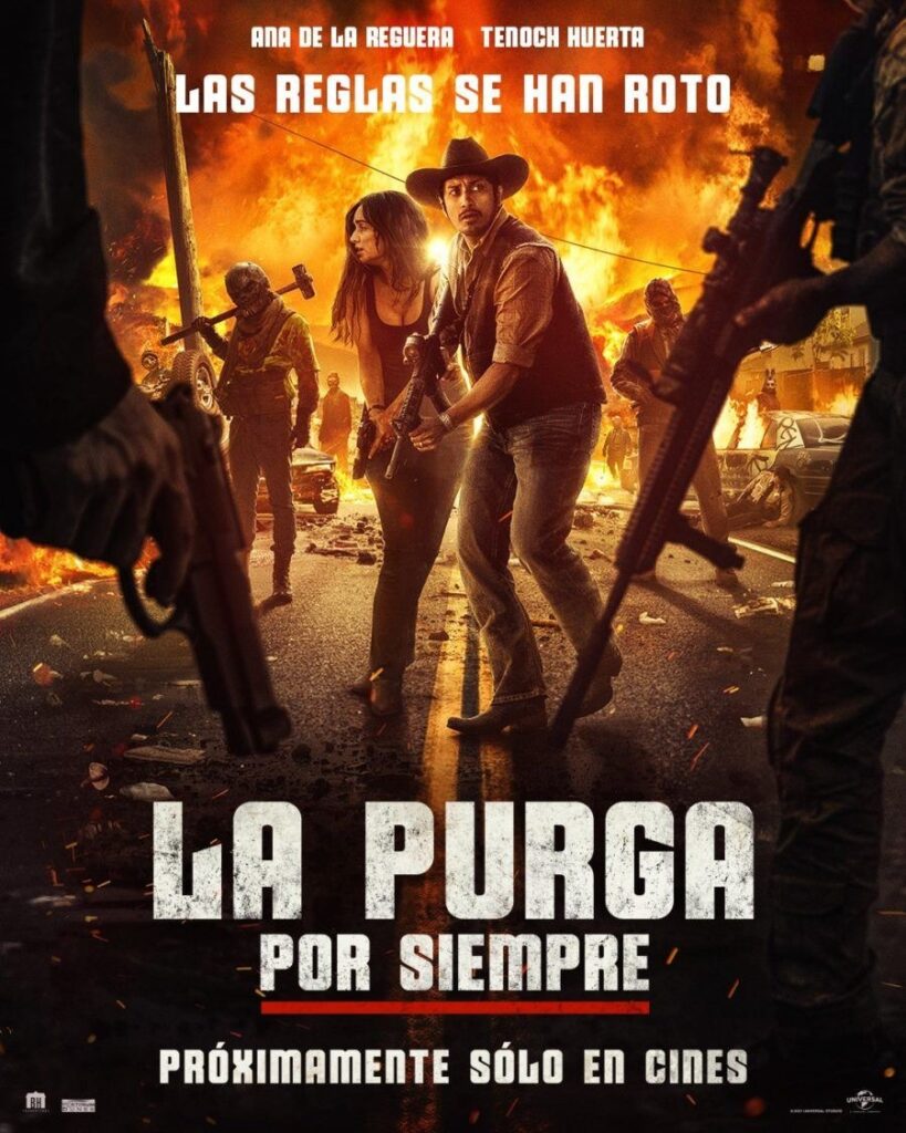 Desde el jueves 15 de julio, en estreno simultáneo con las principales salas del país, se exhibe la nueva entrega de la exitosa saga de terror y ciencia ficción creada por el guionista y director James DeMonaco. Continuando a ‹‹The First Purge›› (2018), la saga de Blumhouse se adentra en un nuevo e innovador territorio: los miembros de un movimiento clandestino, insatisfechos con la noche anual de anarquía y asesinatos, deciden apoderarse del país mediante una campaña infinita de caos y masacre. Nadie está a salvo. Adela y su marido Juan viven en Texas, donde éste trabaja ayudando en un rancho de la adinerada familia de los Tucker. A la mañana siguiente a la Purga, una banda de asesinos enmascarados ataca a los Tucker, incluidas la mujer de Dylan y su hermana, obligando a las dos familias a unirse para defenderse mientras el país entero se sume en una espiral de caos y Estados Unidos comienza a desintegrarse.