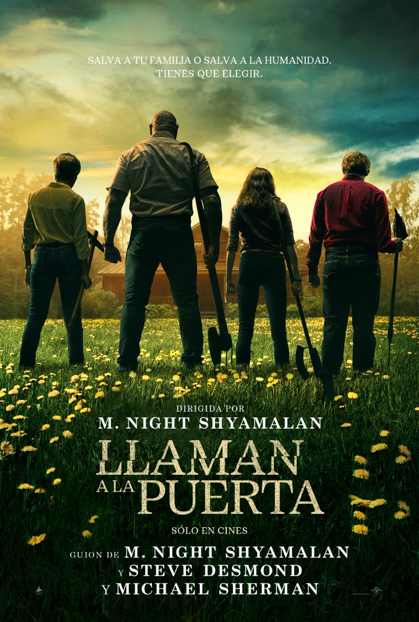 Desde el jueves 2 de febrero, participando del estreno simultáneo en todo el país, se exhibe el nuevo film de terror de M. Night Shyamalan, quien ahora adapta el best-seller “La Cabaña del Fin del Mundo”, de Paul Tremblay, con un reparto que incluye a Dave Bautista y Rupert Grint. Durante unas vacaciones en una cabaña situada en un bosque lejos de toda población, una niña y sus padres son tomados como rehenes por cuatro desconocidos armados, quienes pretenden obligar a la familia a tomar una decisión imposible que evitaría el apocalipsis. Con acceso limitado al mundo exterior, la familia deberá decidir qué creer antes de que todo esté perdido.