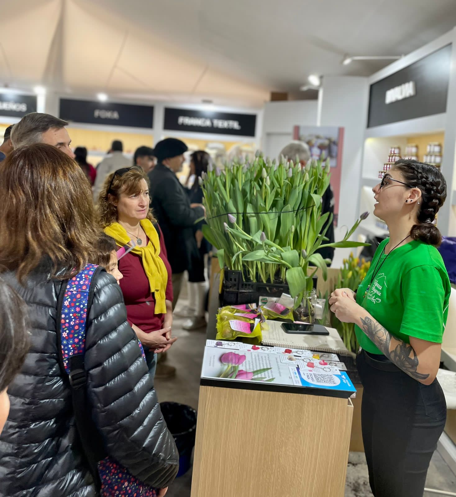 Entre los expositores de la región chubutense, reconocidos con el sello ‘Origen Chubut’ también se encuentra el stand de Tulipanes Patagonia, dedicado desde 1997 a la producción de bulbos de tulipanes; produciendo ocho millones en tres hectáreas de terreno.