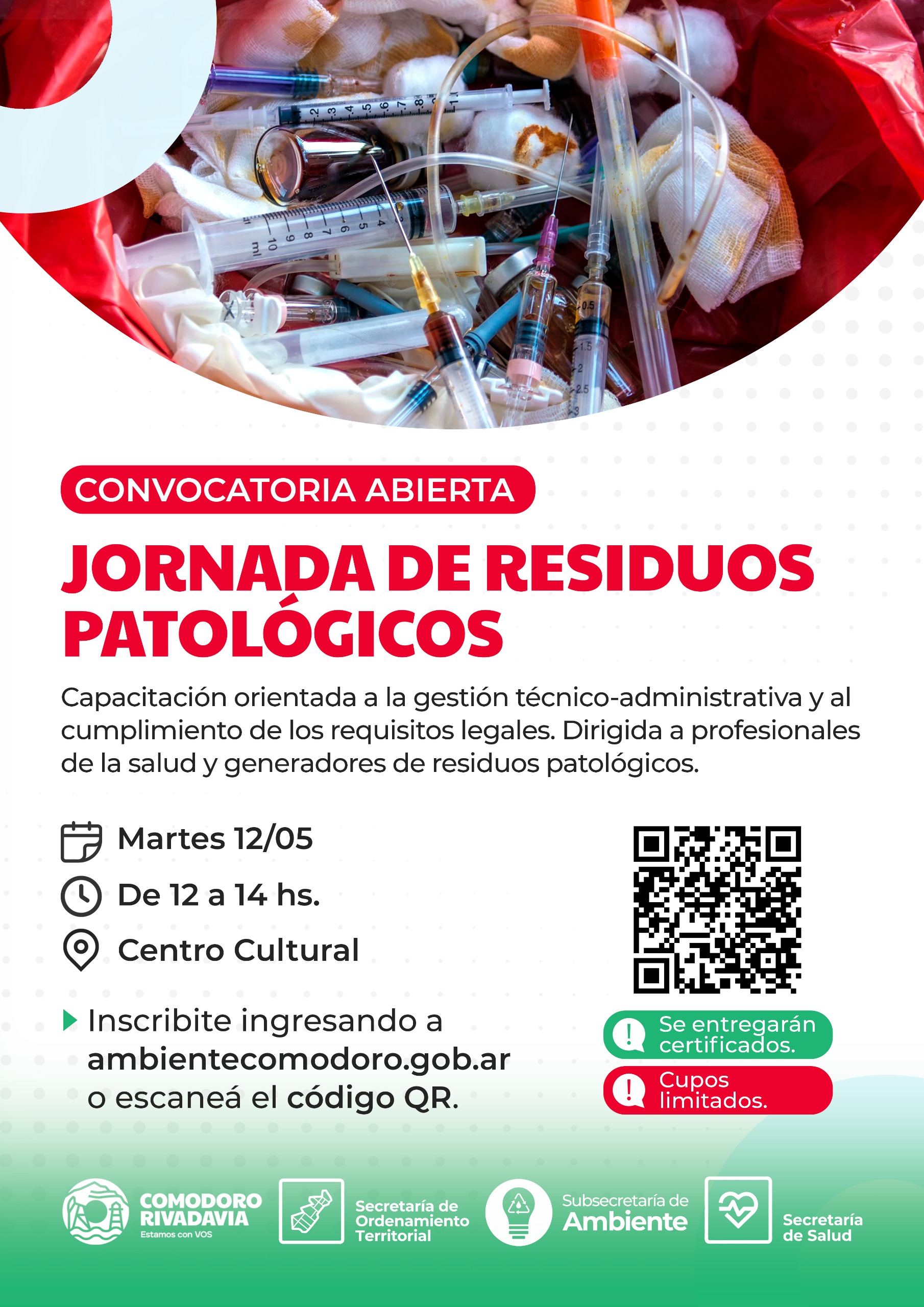 La Municipalidad de Comodoro Rivadavia, a través de la Subsecretaría de Ambiente —dependiente de la Secretaría de Ordenamiento Territorial— en conjunto con la Secretaría de Salud, llevará adelante una capacitación orientada a la gestión técnico-administrativa de residuos patológicos y al cumplimiento de la normativa vigente, haciendo foco en los requisitos legales, la documentación necesaria y los procedimientos administrativos establecidos.