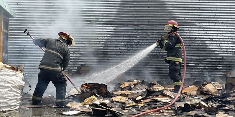 Se incendió un acopio de cartones y bomberos evitaron que el fuego alcance a un auto