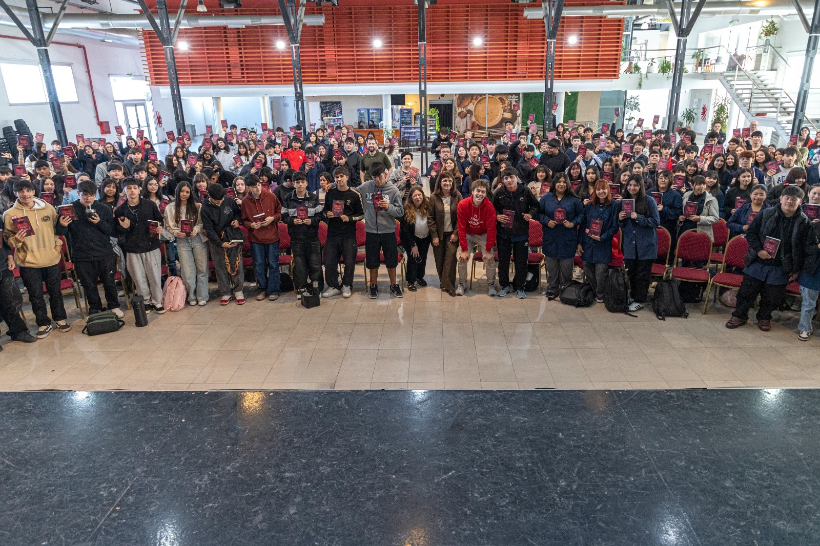 Santiago Speranza, con tan solo 23 años, es uno de los autores más destacados de la literatura juvenil argentina. Ha publicado nueve obras y es conocido por su estilo cercano y auténtico que conecta rápidamente con los adolescentes. Además de su faceta como escritor, es creador del podcast “Te lo dice un despeinado” y fue autor colaborador en la serie de Disney+ “Entrelazados”. Durante el evento, compartió con los estudiantes su obra “Tu amigo invisible”, un libro que fue trabajado en las escuelas participantes.