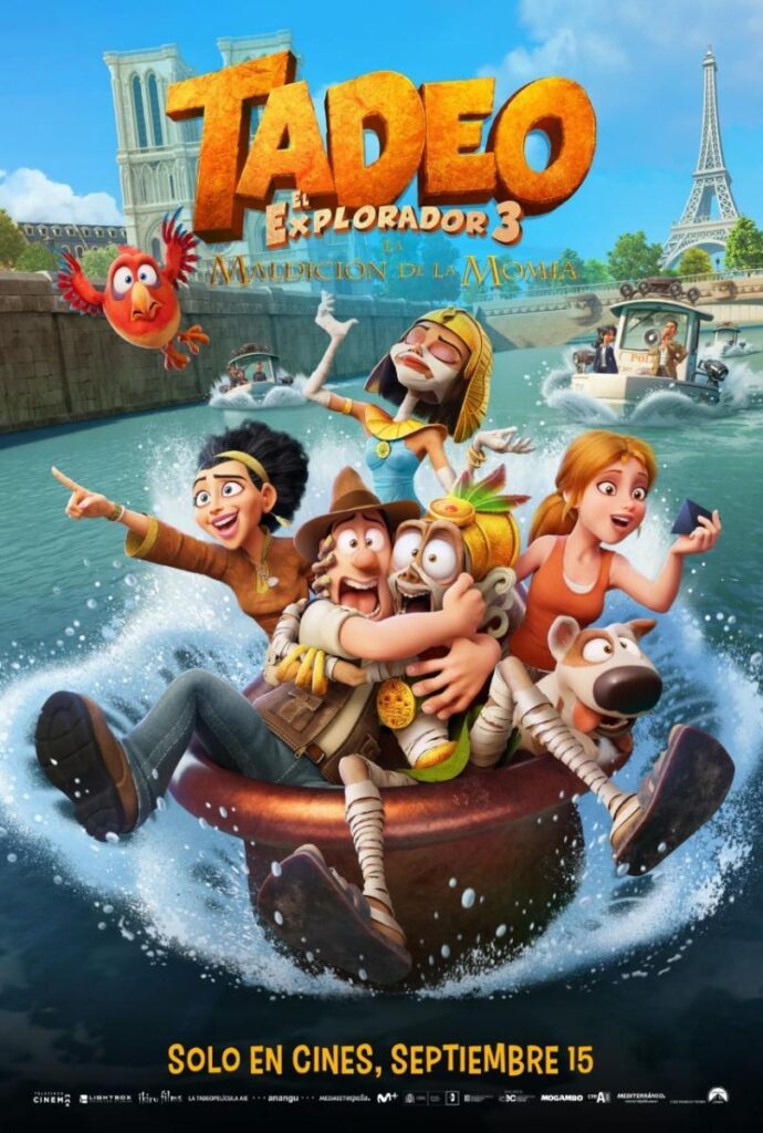 Desde el jueves 6 de octubre, en estreno en simultáneo con las principales salas del país, se exhibe la nueva aventura animada del albañil convertido en arqueólogo. A Tadeo le encantaría que sus colegas arqueólogos le aceptasen como a uno más, pero siempre acaba liándola: destroza un sarcófago y desata un conjuro que pone en peligro la vida de sus amigos, Momia, Jeff y Belzoni. Con todos en contra y solo ayudado por Sara, Tadeo emprenderá una huida llena de aventuras, que le llevará de México a Chicago y de París a Egipto, para encontrar la manera de acabar con la maldición de la momia.